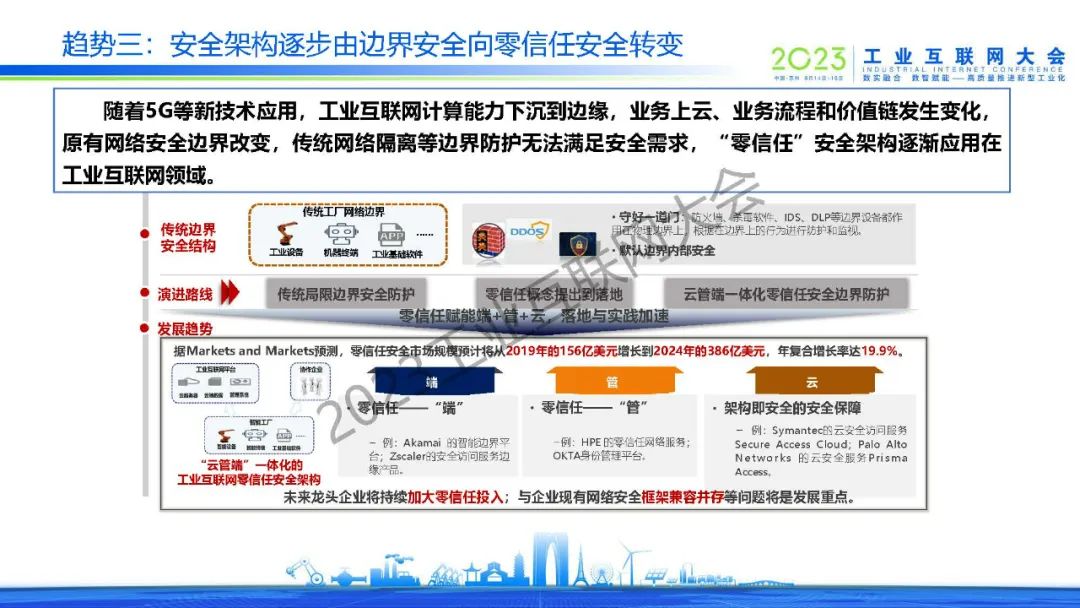 “數(shù)字化轉(zhuǎn)型加速工業(yè)互聯(lián)網(wǎng)安全體系化布局,以 IT 視角為主的安全產(chǎn)品和服務(wù)難以滿足工業(yè)互聯(lián)網(wǎng)的實(shí)際需求,工業(yè)互聯(lián)網(wǎng)安全技術(shù)產(chǎn)品將向工業(yè)場(chǎng)景下沉,不斷融合業(yè)務(wù)流程和企業(yè)定制化需求。”
