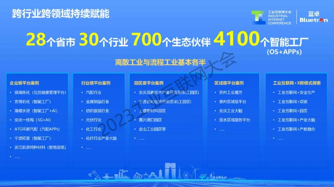 通過(guò)“平臺(tái)+工業(yè)APPs”模式,藍(lán)卓已在全球30個(gè)行業(yè)建設(shè)了4100+多個(gè)新型智能工廠,包括水泥、石化、化工、建材、冶金、電力等流程行業(yè),以及汽配、裝備制造、金屬加工、電子制造等離散行業(yè)。其中,雅戈?duì)枴㈡?zhèn)海煉化、海螺水泥等客戶被評(píng)為國(guó)家級(jí)“數(shù)字領(lǐng)航企業(yè)”,京博石化、寶麗迪等上榜工信部“工業(yè)互聯(lián)網(wǎng)平臺(tái)創(chuàng)新領(lǐng)航應(yīng)用案例”。