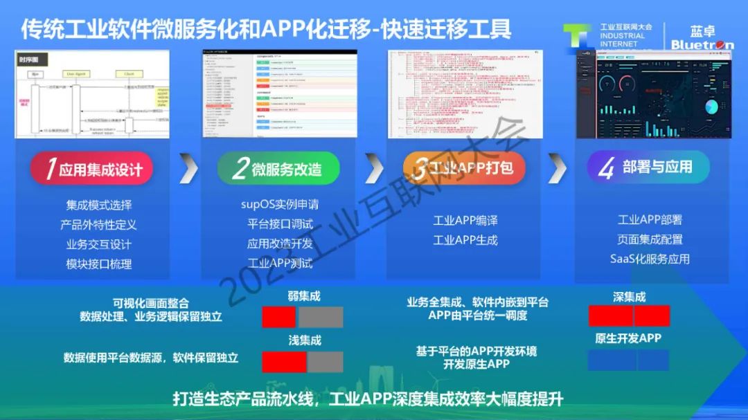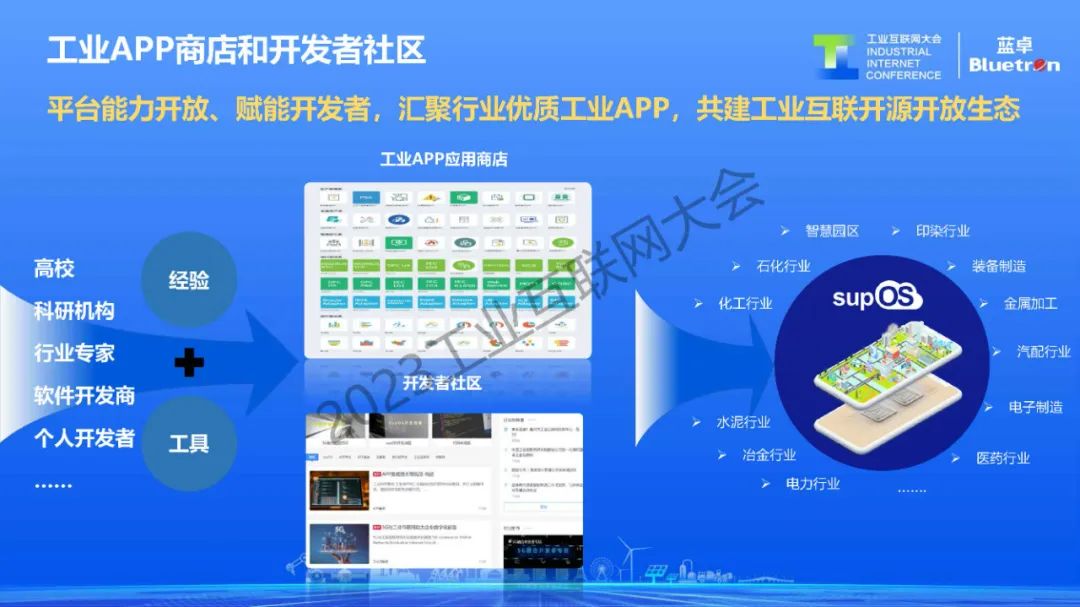 正如手機(jī)操作系統(tǒng)離不開(kāi)應(yīng)用商店豐富的APP,supOS也需要匯聚大量行業(yè)優(yōu)質(zhì)的工業(yè)APP,目前,藍(lán)卓以“平臺(tái)+生態(tài)”戰(zhàn)略,通過(guò)平臺(tái)架構(gòu)逐步開(kāi)源開(kāi)放,提供低代碼開(kāi)發(fā)框架、開(kāi)放開(kāi)發(fā)者社區(qū)等形式,不斷吸引平臺(tái)運(yùn)營(yíng)商、工業(yè)軟件開(kāi)發(fā)商、系統(tǒng)服務(wù)商、科研機(jī)構(gòu)、工業(yè)企業(yè)等開(kāi)發(fā)團(tuán)隊(duì),基于supOS打造豐富的應(yīng)用生態(tài)。