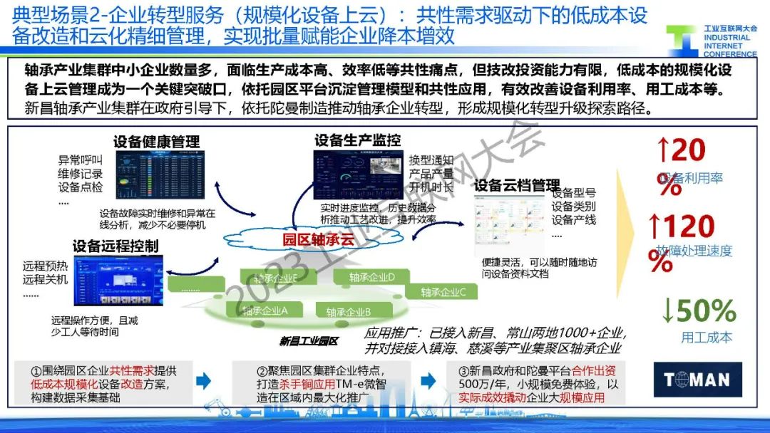 楊昊亭指出,工業互聯網進入應用推廣期形成兩條典型路徑,園區落地成為重要選擇。工業園區是制造業數字化主戰場,對工業互聯網平臺需求迫切。后續平臺賦能園區關鍵是打造“園區多源數據接入+數據行業知識融合+微服務支撐”的新型園區基礎設施,構建支撐園區轉型的數字化能力。