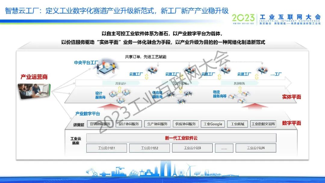 “智慧云工廠以自主可控工業(yè)軟件體系為基石,以產(chǎn)業(yè)數(shù)字平臺為載體,以價值服務驅動“實體平面”業(yè)務一體化融合為手段,以產(chǎn)業(yè)升級為目的的一種網(wǎng)絡化制造新范式?!?/p>