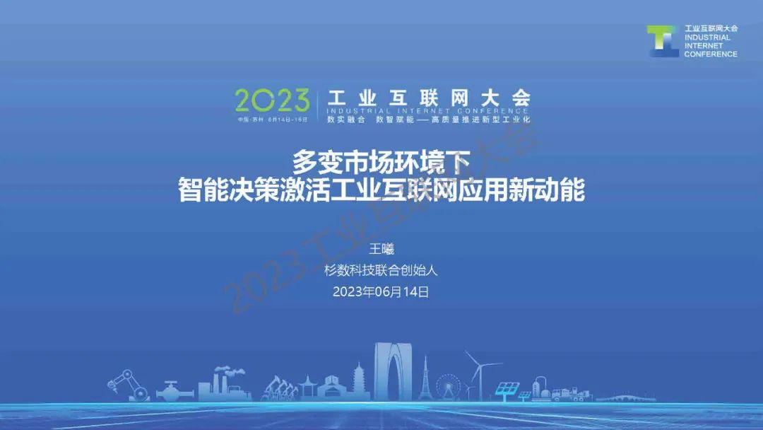 6月14日,在2023工業(yè)互聯(lián)網(wǎng)大會“工業(yè)互聯(lián)網(wǎng)產(chǎn)融推進論壇”上,北京杉數(shù)科技有限公司聯(lián)合創(chuàng)始人、首席產(chǎn)品官(CPO)王曦發(fā)表了《多變市場環(huán)境下,智能決策激活工業(yè)互聯(lián)網(wǎng)應(yīng)用新動能》的主題演講。