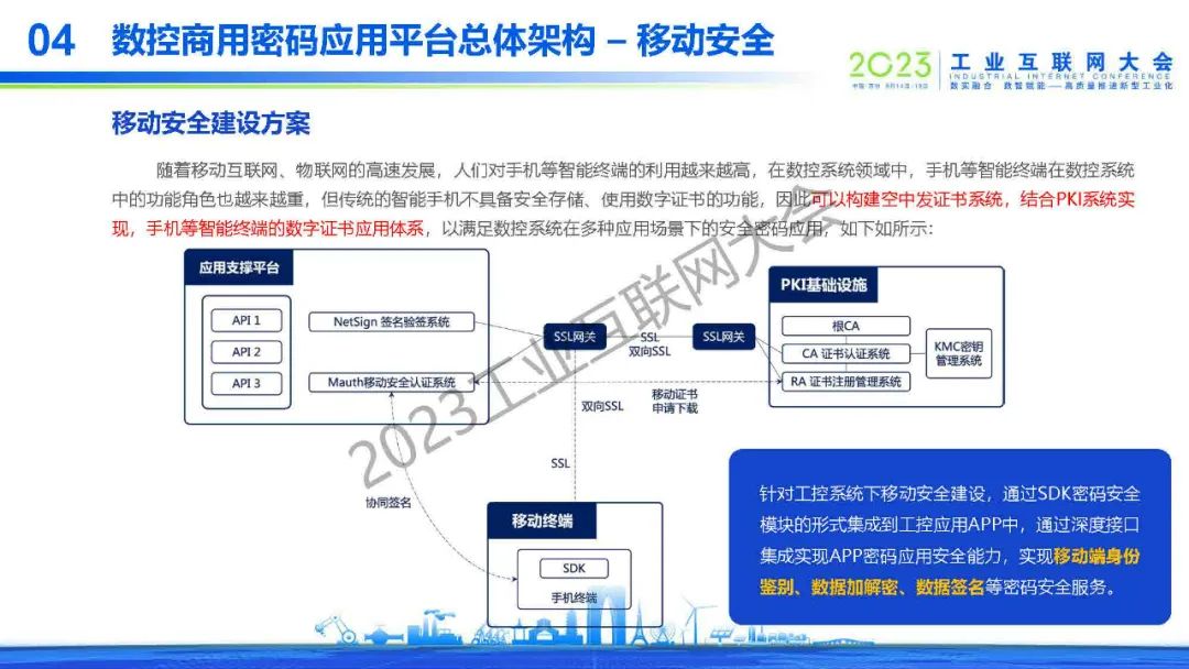 “隨著移動互聯(lián)網(wǎng)、物聯(lián)網(wǎng)的高速發(fā)展,人們對手機(jī)等智能終端的利用越來越高,在數(shù)控系統(tǒng)領(lǐng)域中,手機(jī)等智能終端在數(shù)控系統(tǒng)中的功能角色也越來越重,但傳統(tǒng)的智能手機(jī)不具備安全存儲、使用數(shù)字證書的功能,因此可以構(gòu)建空中發(fā)證書系統(tǒng),結(jié)合PKI系統(tǒng)實現(xiàn),手機(jī)等智能終端的數(shù)字證書應(yīng)用體系,以滿足數(shù)控系統(tǒng)在多種應(yīng)用場景下的安全密碼應(yīng)用。”