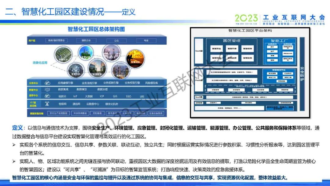 “智慧化工園區的核心內涵是安全與環保的監控與提升以及通過系統的協同與集成,信息的交互與共享,實現資源優化配置,整體效益最大”