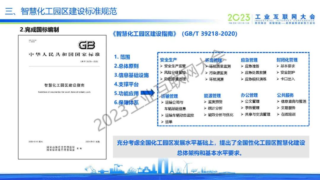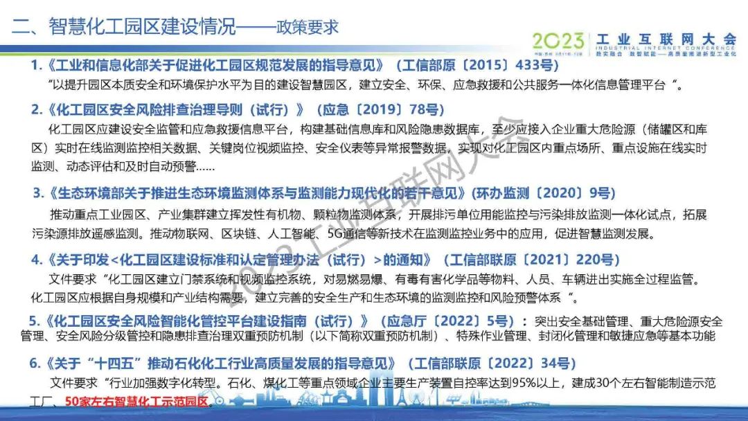 6月15日,在2023工業互聯網大會“工業互聯網+危化安全生產數字化轉型論壇”上,中國石油和化學工業聯合會化工園區工作委員會處長馬從越發表了《智慧化工園區建設進展與應用實踐》的主題演講。