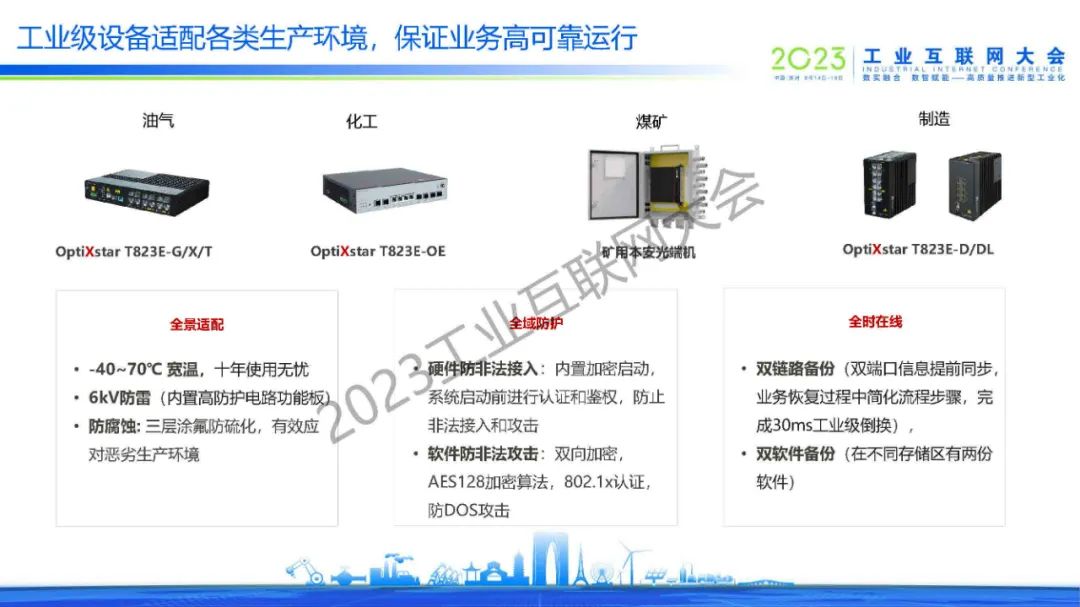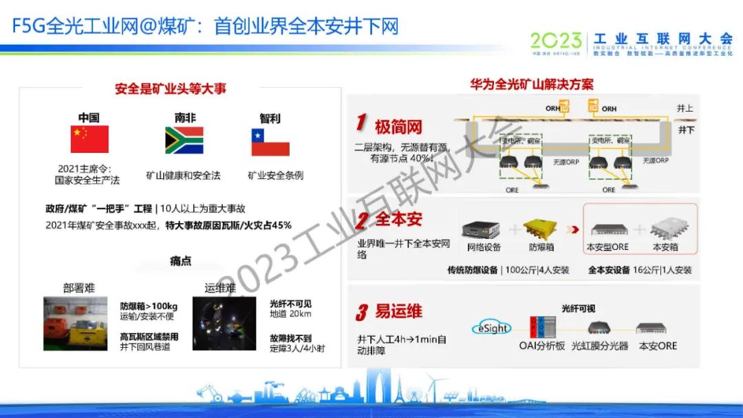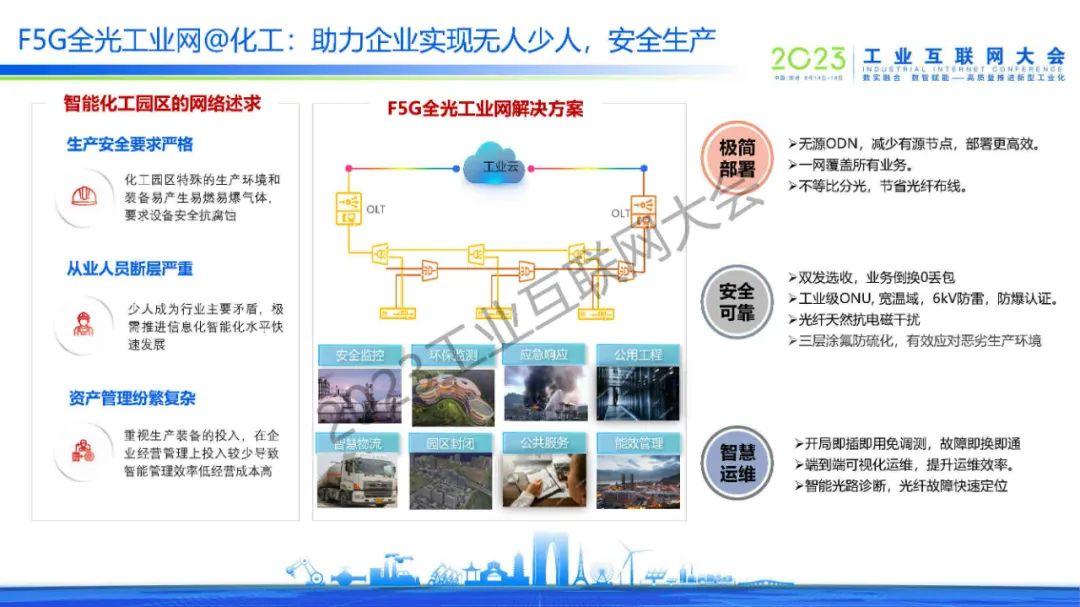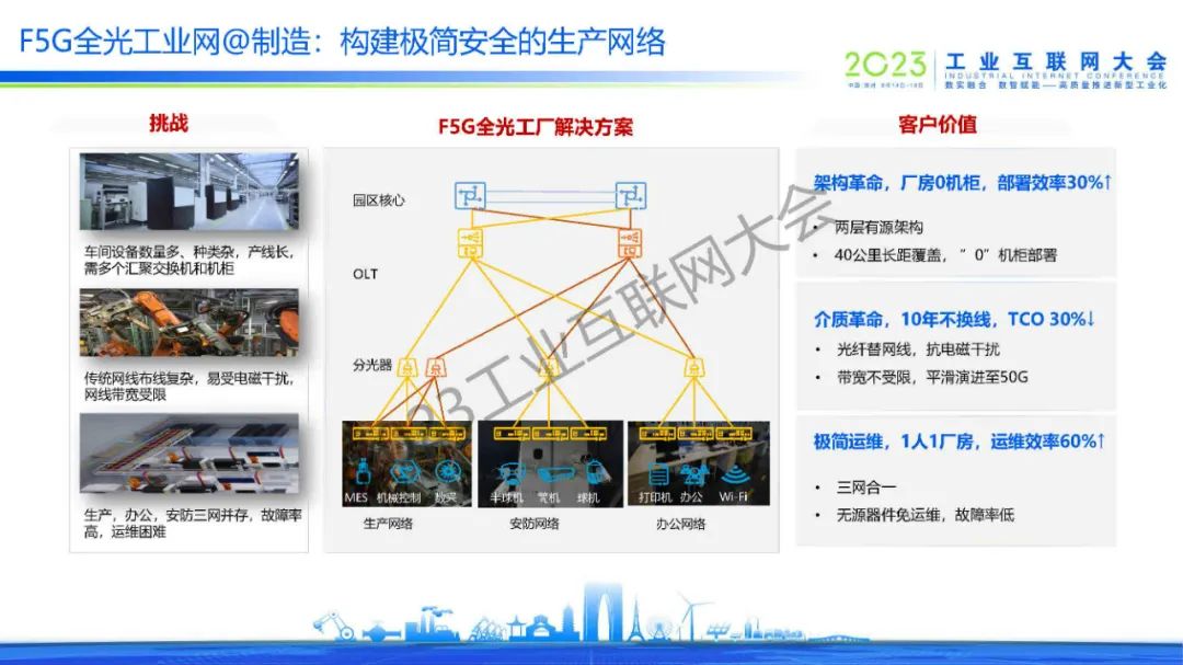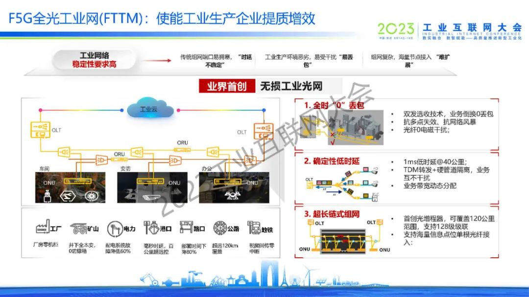 李豫西指出,隨著工業(yè)智能化持續(xù)深入,F(xiàn)5G在底層聯(lián)接、數(shù)據(jù)傳輸、融合交互等方面扮演著日益重要的角色,其全時(shí)“0”丟包,確定性低時(shí)延,以及超長(zhǎng)鏈?zhǔn)浇M網(wǎng)等特征,可精確匹配生產(chǎn)物聯(lián)場(chǎng)景超高可靠、生產(chǎn)控制場(chǎng)景精準(zhǔn)控制和視頻回傳場(chǎng)景超遠(yuǎn)覆蓋的訴求。廣泛適配油氣,化工,煤礦,制造、地鐵、高速、港口、電力、路口等場(chǎng)景。華為正積極聯(lián)合產(chǎn)業(yè)合作伙伴,不斷完善F5G產(chǎn)業(yè)標(biāo)準(zhǔn)、豐富F5G場(chǎng)景應(yīng)用和共創(chuàng)F5G產(chǎn)業(yè)生態(tài),為工業(yè)企業(yè)點(diǎn)亮發(fā)展的“全光”未來(lái)