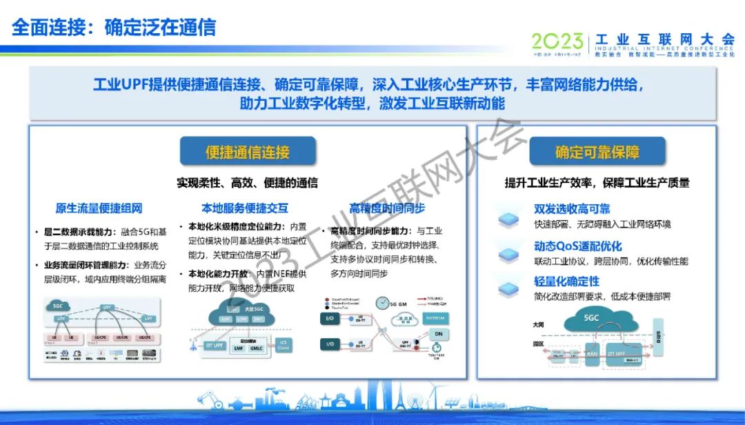 “5G+工業互聯網從輔助生產向融入生產邁進的過程中,UPF作為5G網絡與工業網絡互通的紐帶,需解決控制集中化、架構扁平化、運維便捷化的新需求,從而使能5G與工業互聯網的邊緣算網融合。“