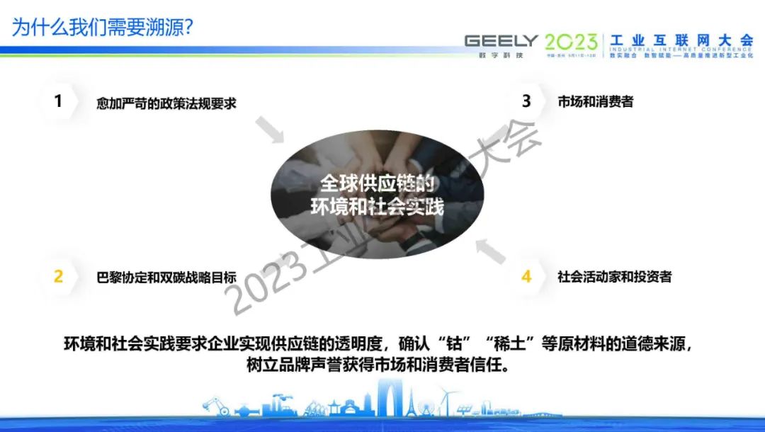 賽磊表示,環境和社會實踐要求企業實現供應鏈的透明度,確認“鈷”“稀土”等原材料的道德來源,樹立品牌聲譽獲得市場和消費者信任。面對于復雜供應鏈,數字化追溯是剛需。溯源的兩個重要組成部分,首先供應鏈透明度和可見性,其次數據信息披露、滿足監管合規。