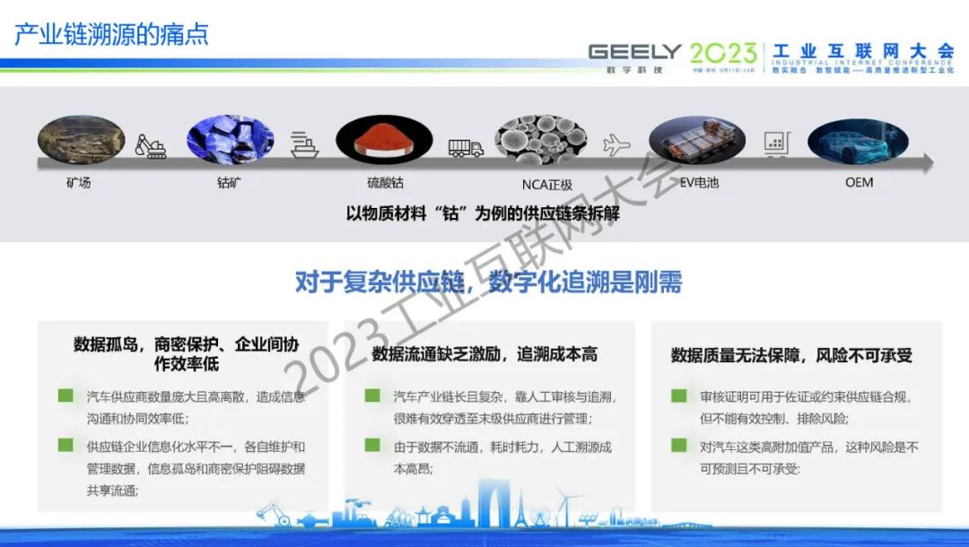 6月16日,在2023工業互聯網大會“工業互聯網+區塊鏈創新發展論壇”上,無錫吉利數字科技有限公司產品總監賽磊發表了《基于區塊鏈的工業互聯網產業供應鏈溯源云平臺實踐》的主題演講。