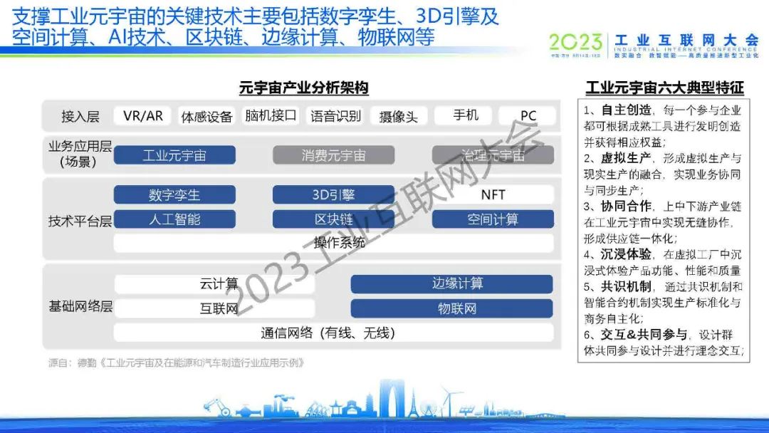 “工業元宇宙六大典型特征:自主創造、虛擬生產、協同合作、沉浸體驗、共識機制和交互&共同參與?!?/p>