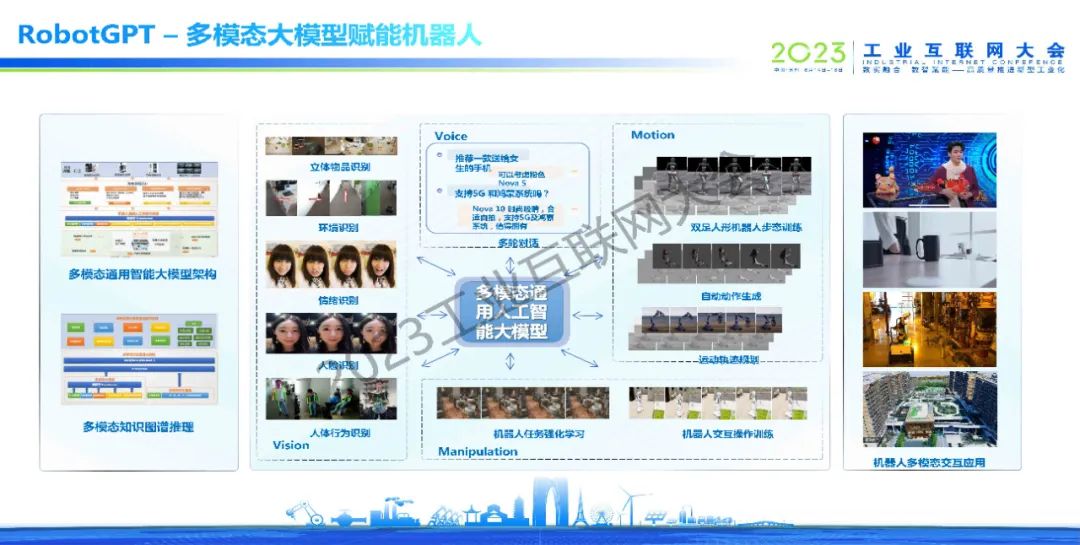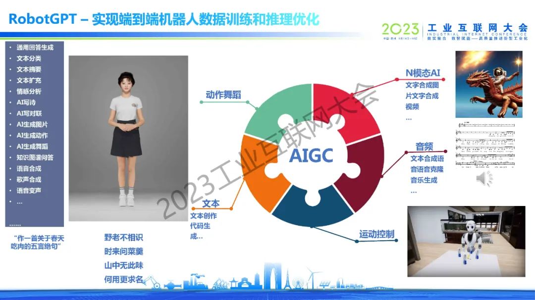 吳興貴指出,人工智能進入新時代,特別是在通用人工智能 (AGI) 領域,多模態預訓練大模型和強化學習 的出現使得人工智能應用更加廣泛,同時生成 式 AI的興起也促進了數字內容的生產和創造, 即將迎來產業爆發。RobotGPT是多模態大模型賦能機器人實現端到端機器人數據訓練和推理優化。