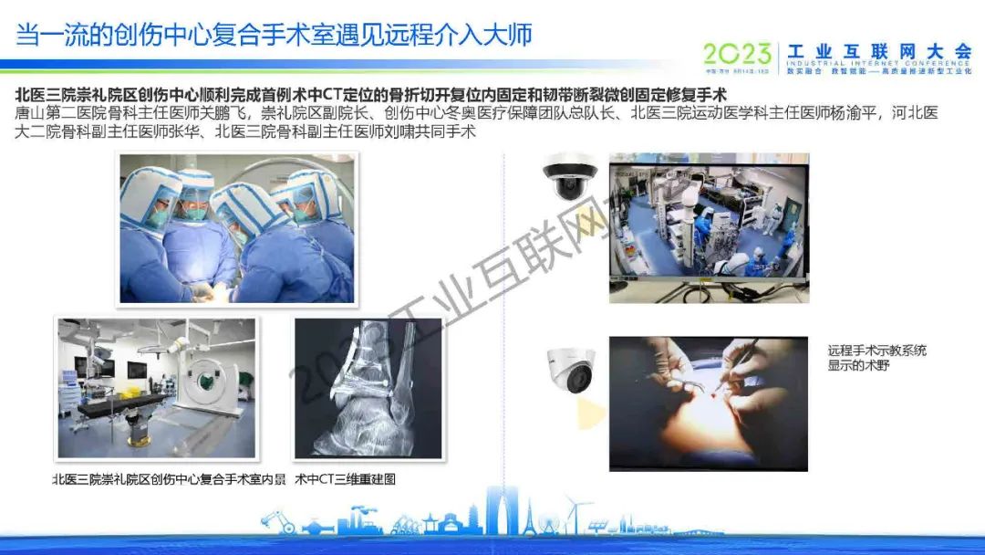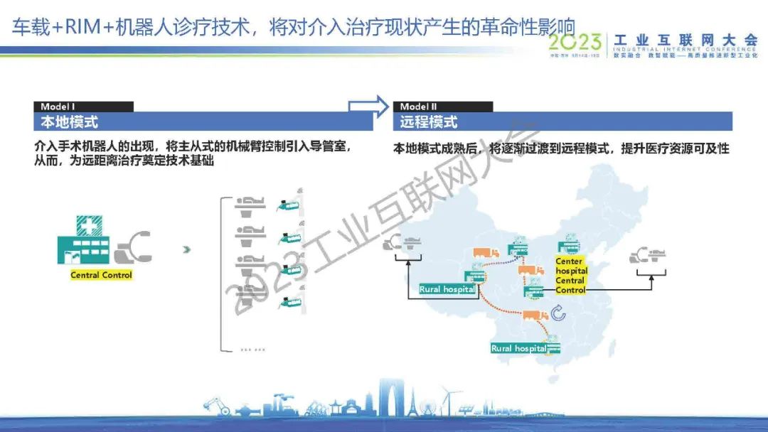 “手術(shù)機(jī)器人可以通過(guò)機(jī)械臂的方式,醫(yī)生可以離比較遠(yuǎn)的位置去遠(yuǎn)程操控機(jī)械臂進(jìn)行手術(shù)。這個(gè)不光是限于介入,包括像外科、腔鏡、骨科,還有非常完整的網(wǎng)絡(luò)環(huán)境,包括像5G和光纖的有線的環(huán)境,有非常多不同的組網(wǎng)方式。”