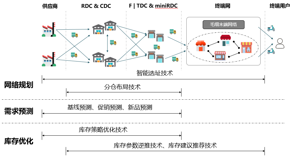 綜上,通過網絡規劃、需求預測、庫存優化3個模塊8個子課題及其產品,京東物流實現了進一步將服務向供應鏈上游的規劃域、計劃域延展的規劃,最終實現為客戶提升整體供應鏈效率,全鏈路落實降本增效。