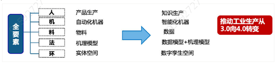 工業(yè)互聯(lián)網(wǎng)平臺(tái)通過對(duì)人、機(jī)、料、法、環(huán)等全要素進(jìn)行重構(gòu),推動(dòng)工業(yè)生產(chǎn)從3.0向4.0轉(zhuǎn)變。