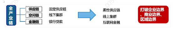 重構(gòu)供應(yīng)鏈、空間鏈、金融鏈等全產(chǎn)業(yè)鏈,打破企業(yè)邊界、商業(yè)邊界、區(qū)域邊界。