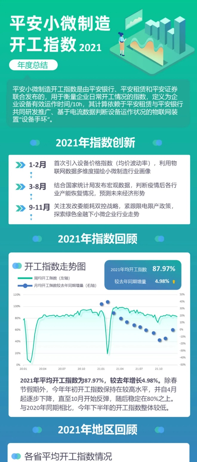2020年3月,疫情期間“塔比智造”平臺基于設備手環的監測數據,聯合平安租賃、平安銀行發布“安指數-復工指數”,對29個省、5000余家存量中小微制造企業進行回訪,結合“設備手環”收集的26個三級子行業、近萬臺設備的運行數據,同步參考各地政府開工管控措施,推算出企業的復工指數以及制造業各主要細分行業的設備開機比率,聯合金融機構為全國300余家首批復工且有生產性資金周轉需求的客戶提供綠色融資通道,在一個月左右的時間內累計投放1.5億元普惠貸款,助力中小微制造業客戶快速復工復產。