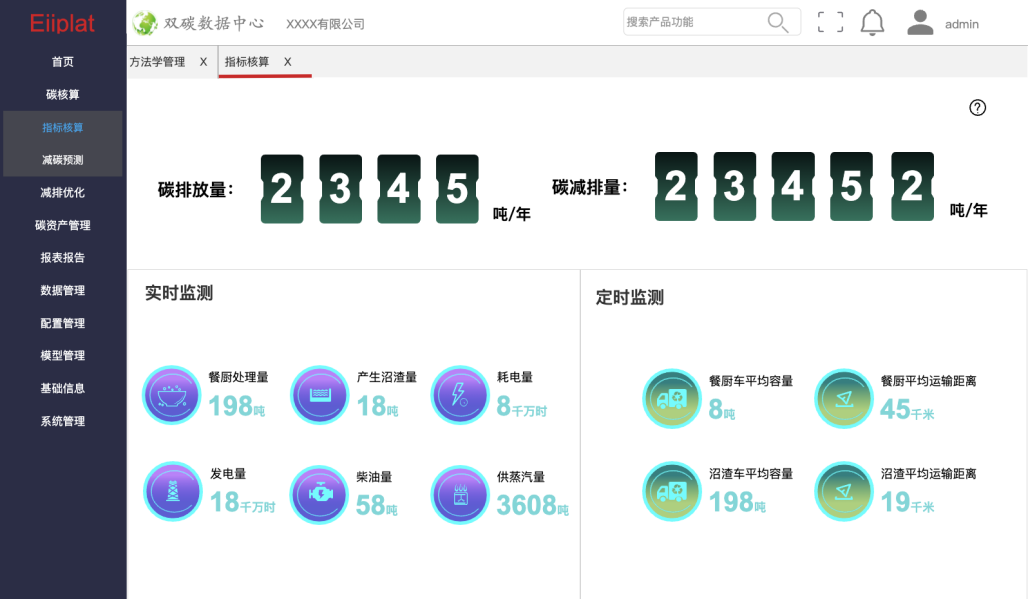 該項目碳排放主要包括沼渣運輸過程中的CO2排放和項目消耗電力的CO2排放;碳減排主要包括回收沼氣減排、替代燃煤鍋爐供蒸汽減排和替代燃煤供電減排。通過雙碳數據中心,能夠實時監測碳核算相關的生產指標,通過內置算法高效便捷地核算項目碳減排和碳排放,摸清企業碳家底。該項目的碳減排量預計在4萬噸以上。