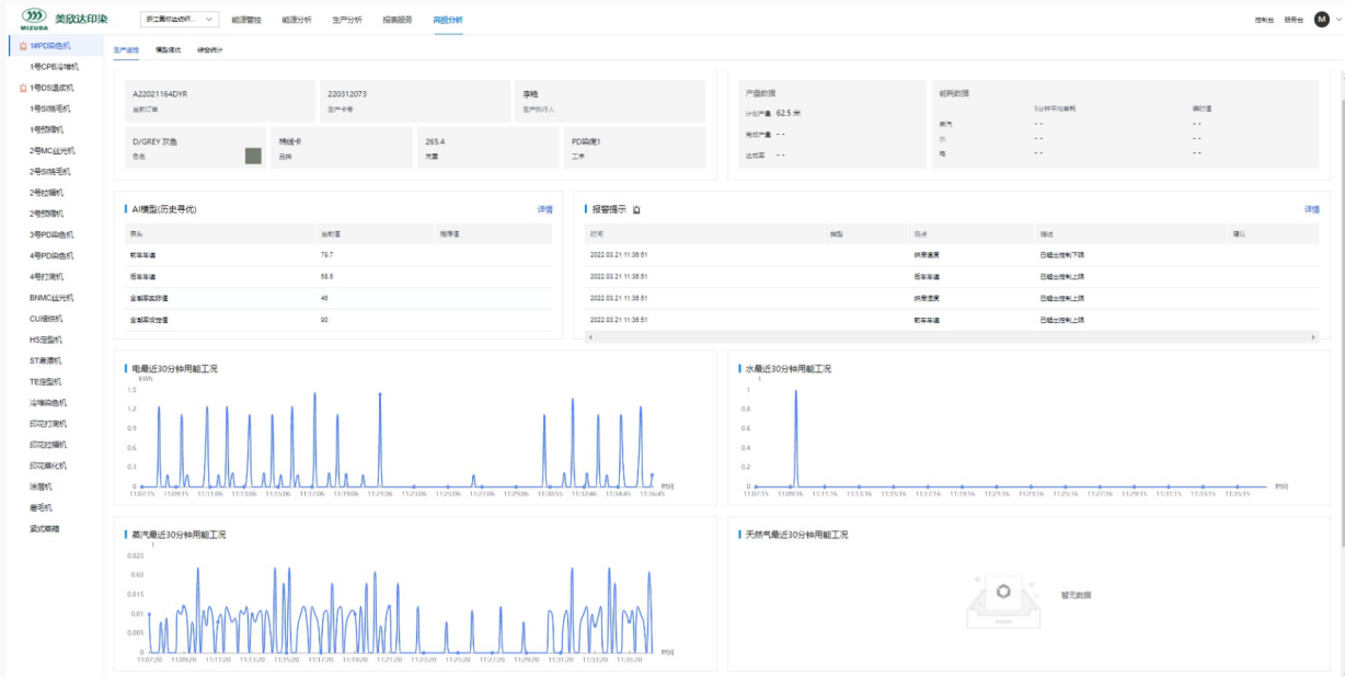 解決方案:美欣達印染產線采用典型的長車染色工藝,設備繁多,工藝復雜,產線長達幾百米,度能系統為給企業提供了基于模型的高級節能分析模塊。深入長車印染產線與工藝,基于能耗數據、生產數據、工藝數據,多維數據建立模型,找到最優能耗,反饋優化參數建議,識別能源偏差與浪費,幫助企業透明化生產管理,及時調優控制,達到精準化節能降碳。