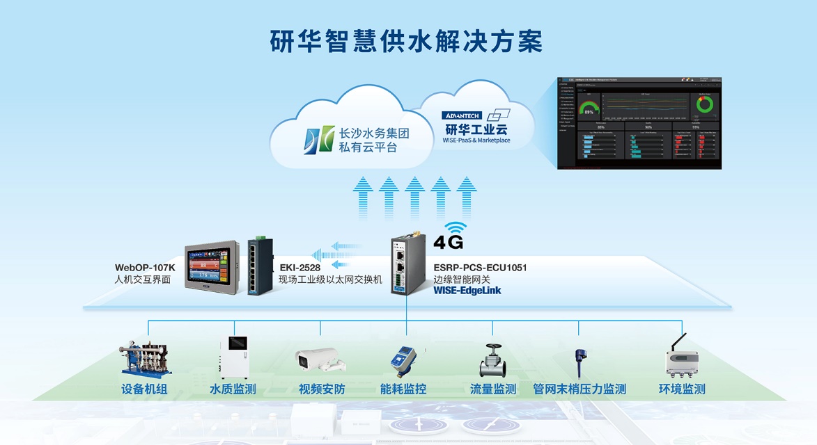 研華智慧供水解決方案集成了邊緣智能、工業通訊、以及WISE-PaaS工業IoT云平臺,方案基于云的遠程設備管理,解決市政行業二次供水難題。研華科技將致力于水“智”難題、探索創新解法,推動水務行業數智化發展。