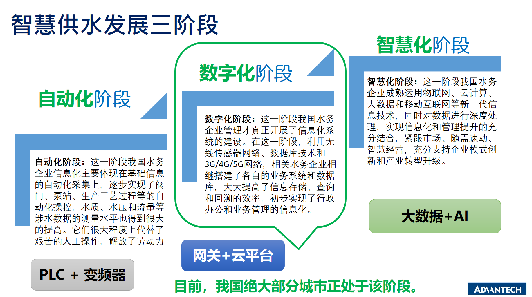 如圖3所示,目前大多供水管理系統還處于“數字化”階段,研華科技會一如既往的協同專業伙伴,借助工業云平臺、AI、邊緣智能等技術與產品方案,共同加速推動供水智慧化應用落地。