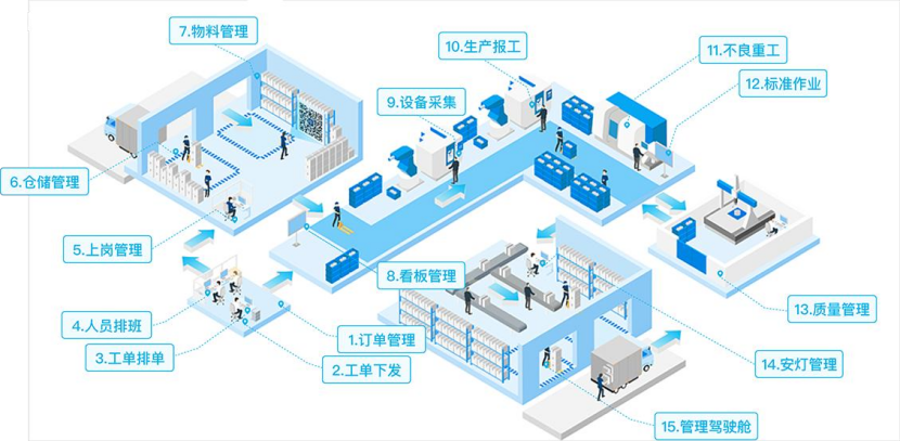 基于工業生產場景:(生產管理、質量管理、保全管理、計劃管理、倉庫管理、精益管理、異常管理、刀具管理等等),打造的SaaS產品服務,提供場景化的產品服務,面向中小制造業企業,標準化、場景化、SaaS化,為工廠管理提供有力支撐抓手。