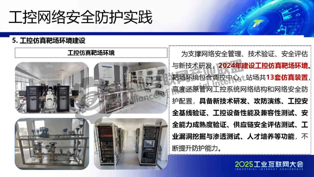工控仿真靶場環境包含調控中心、站場共13套仿真裝置,高度還原管網工控系統網絡結構和網絡安全防護配置,具備新技術研發、攻防演練、工控安全基線驗證、工控設備性能及兼容性測試、安全能力成熟度驗證、供應鏈安全評估測試、工業漏洞挖掘與滲透測試、人才培養等功能,不斷提升防護能力。