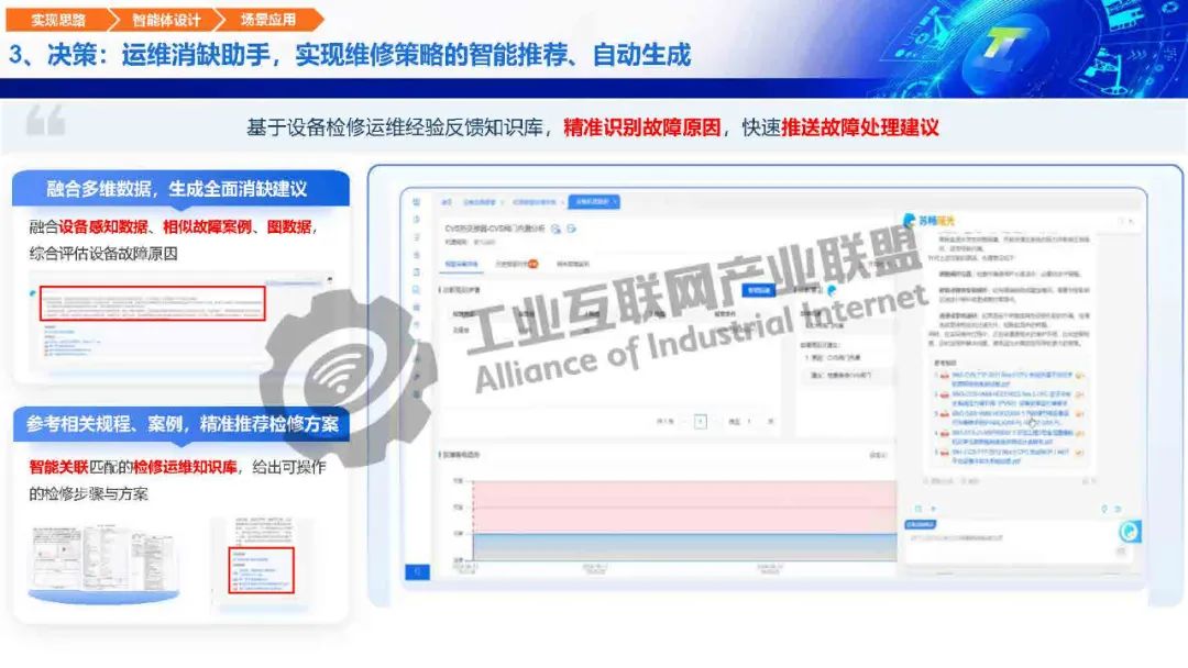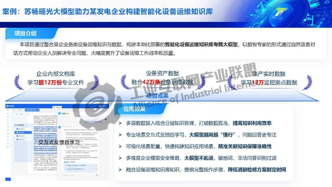 毛旭初介紹,工業大模型基于海量工業多模態數據訓練,具備工業知識推理、生產風險識別、工藝仿真優化等決策能力。瑤光工業大模型在小模型的基礎上加持大模型的生成、推理、調度能力,實現故障綜合判斷,三大智能體協同,實現從觀察、分析、決策、行動到驗證的閉環。