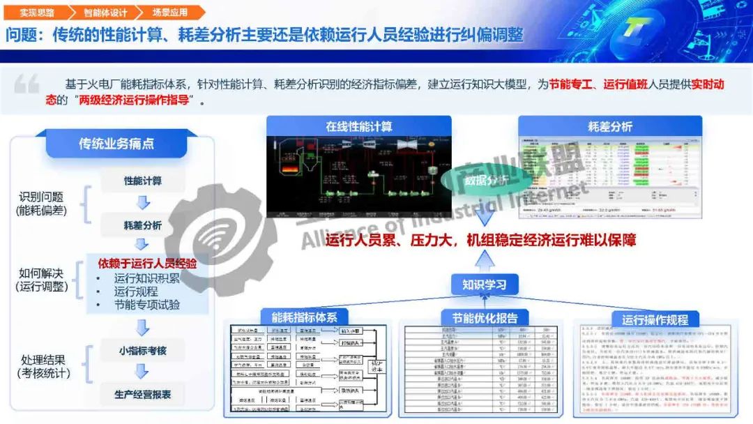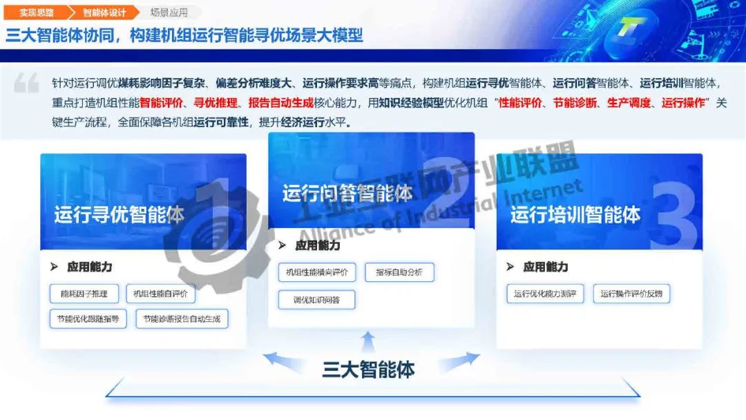 針對運行調優煤耗影響因子復雜、偏差分析難度大、運行操作要求高等痛點,瑤光工業大模型構建機組運行尋優智能體、運行問答智能體、運行培訓智能體,重點打造機組性能智能評價、尋優推理、報告自動生成核心能力,用知識經驗模型優化機組“性能評價、節能診斷、生產調度、運行操作”關鍵生產流程,全面保障各機組運行可靠性,提升經濟運行水平。