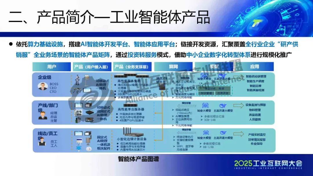 李程介紹,浪潮云洲以新型工業(yè)數(shù)字基礎(chǔ)設(shè)施為基礎(chǔ),通過以數(shù)據(jù)服務(wù)為核心的智能制造服務(wù)大、中、小型企業(yè),賦能園區(qū)集群,提高產(chǎn)業(yè)鏈、供應(yīng)鏈協(xié)同創(chuàng)新。工業(yè)智能體產(chǎn)品依托算力基礎(chǔ)設(shè)施,搭建AI智能體開發(fā)平臺、智能體應(yīng)用平臺,鏈接開發(fā)資源,匯聚覆蓋全行業(yè)企業(yè)“研產(chǎn)供銷服”全業(yè)務(wù)場景的智能體產(chǎn)品矩陣,通過投資轉(zhuǎn)服務(wù)模式,借助中小企業(yè)數(shù)字化轉(zhuǎn)型體系進(jìn)行規(guī)模化推廣。