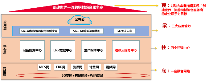 在打造湘鋼5G智慧工廠的過程中,創(chuàng)新性構(gòu)建了“1+1+N”模式的5G+智慧鋼鐵垂直行業(yè)解決方案,助力智能化、數(shù)字化的中國鋼鐵企業(yè)轉(zhuǎn)型,實現(xiàn)鋼鐵企業(yè)“讓設(shè)備開口說話、讓機器自主運行、讓員工尊嚴(yán)工作、讓企業(yè)高效發(fā)展”的目標(biāo)。