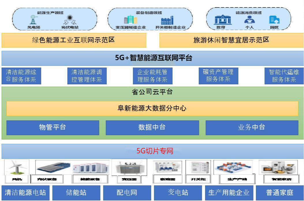 遵循可復制、可推廣、可開放的原則,按照“能源轉型升級、5G場景同步建設、業務精益管理、服務持續提升”的思路,以能源與城市融合協同發展為愿景,圍繞“5G、一中心、五體系”建設,打造阜新特色的5G+智慧能源互聯網小鎮。