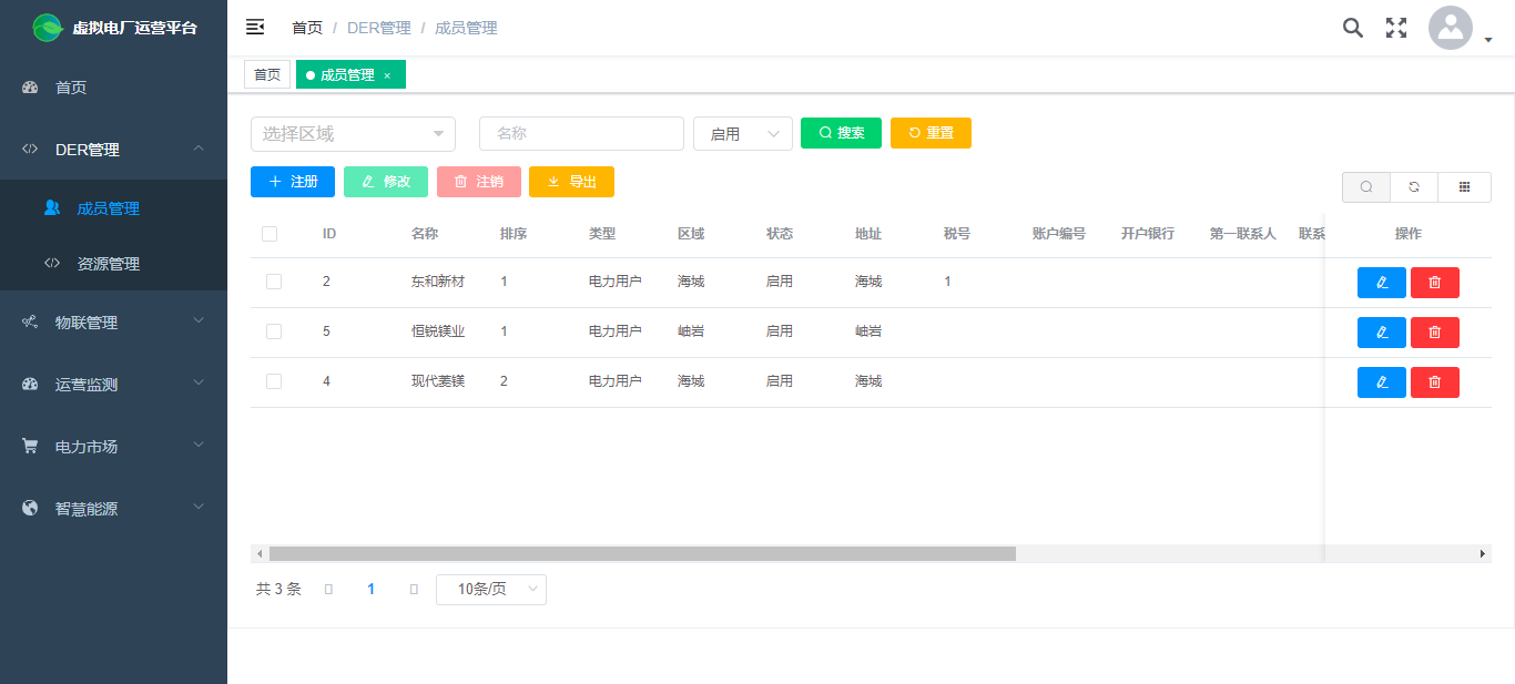 成員管理:維護成員檔案信息,實現成員的查詢、注冊、修改與注銷操作,成員可以是企業也可以是資源聚合商。