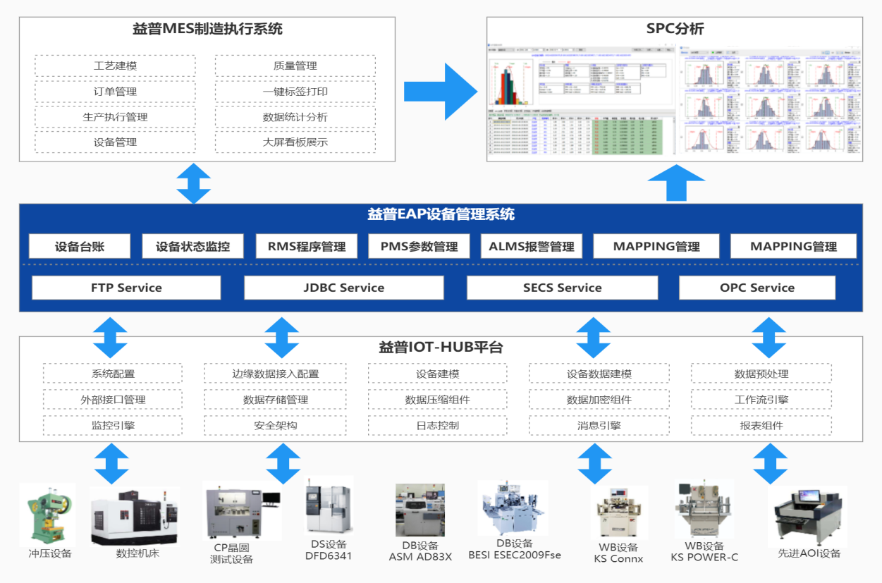 益普旗幟鮮明地從半導(dǎo)體封裝測試行業(yè)數(shù)字化車間服務(wù)出發(fā),經(jīng)過10年積淀,打通了很多關(guān)鍵技術(shù):SECS/GEM 通信協(xié)議、LOE批次作業(yè)引擎、STDF數(shù)據(jù)分析等,并隨著近幾年半導(dǎo)體封測企業(yè)數(shù)量的迅速增加,也獲得了大量的應(yīng)用場景進(jìn)行產(chǎn)品迭代。