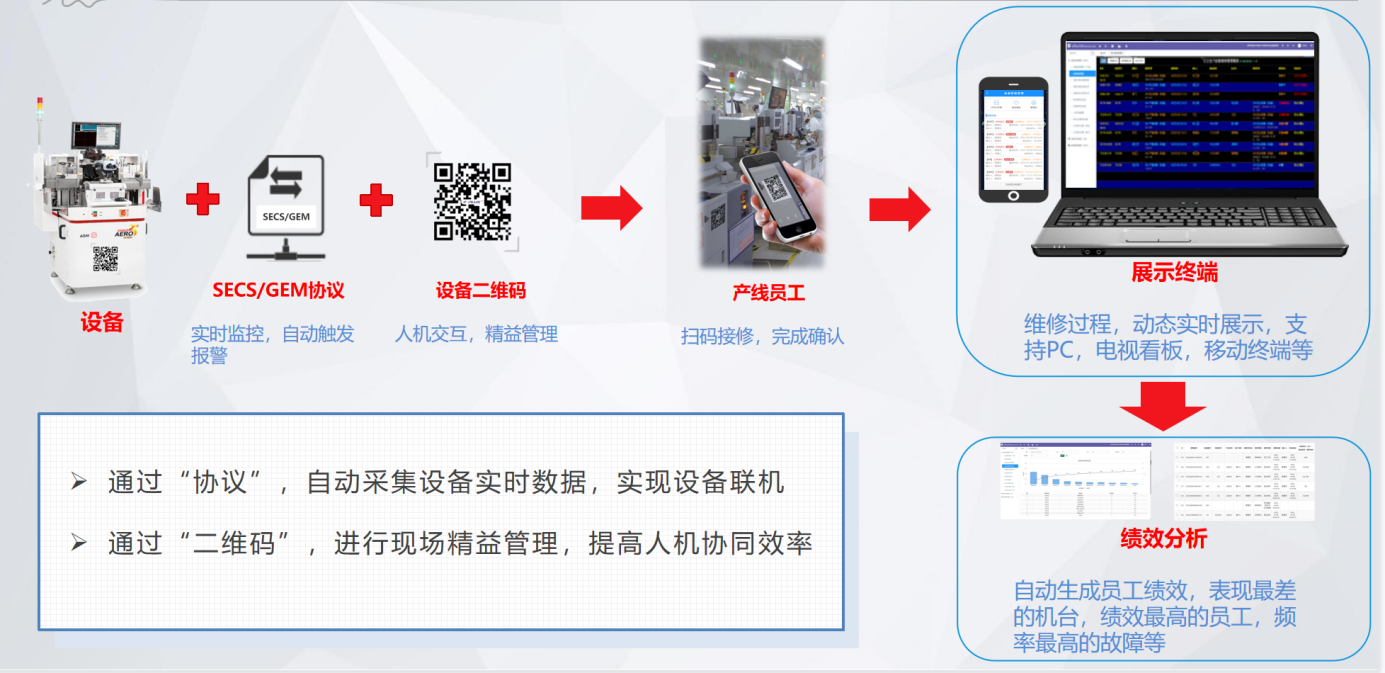 針對半導(dǎo)體行業(yè)特點(diǎn),底層基于工業(yè)物聯(lián)網(wǎng)系統(tǒng)架構(gòu),上層應(yīng)用支持私有云與SaaS化部署兩種方式;在全面感知層、產(chǎn)線層、工業(yè)控制層、系統(tǒng)集成層、數(shù)據(jù)存儲(chǔ)層、數(shù)據(jù)應(yīng)用層、數(shù)據(jù)展現(xiàn)層,后續(xù)可通過工業(yè)互聯(lián)網(wǎng)實(shí)現(xiàn)產(chǎn)業(yè)協(xié)同。