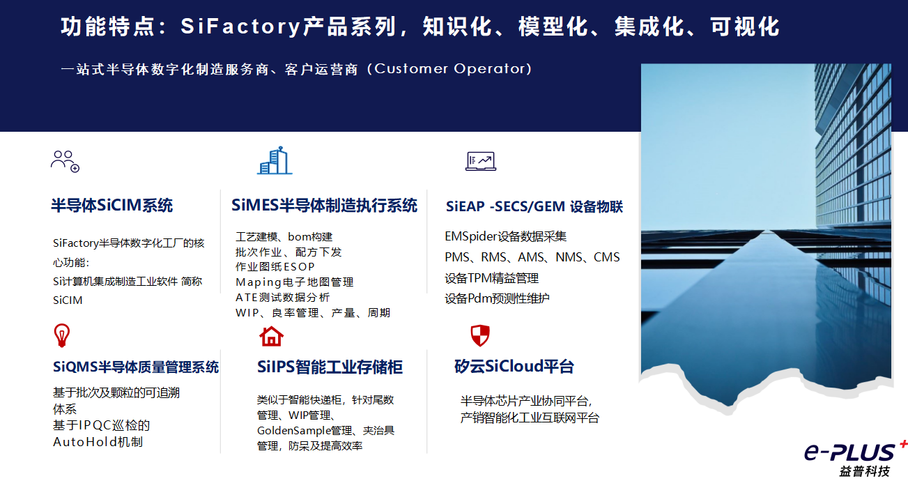 產(chǎn)品打通SECS/GEM半導(dǎo)體專用通信協(xié)議,基于工業(yè)物聯(lián)網(wǎng)及微服務(wù)架構(gòu),研發(fā)半導(dǎo)體智能制造執(zhí)行系統(tǒng)—“SiFactroy半導(dǎo)體數(shù)字化工廠”。