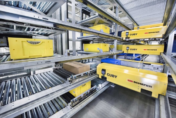 在堆貨貨架區(qū)域,傳統(tǒng)采用人工或人工操作叉車取放貨物。自動貨架Shuttle(見圖1-6),根據(jù)后臺指令負責在立體貨架區(qū)域的貨物裝卸操作。