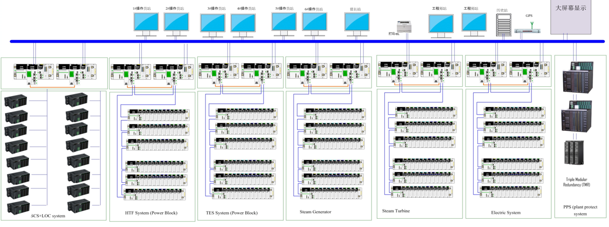 本解決方案已經經過很多商業化電站的驗證,在業內口碑很多。同時使用了本公司先進成熟可靠的一系列產品,在產品及網絡設計的時候充分考慮了冗余性,及糾錯性。所有控制器,網絡,電源以及服務器等等全部采用冗余設計方案。在儲換熱系統使用三重冗余控制系統。