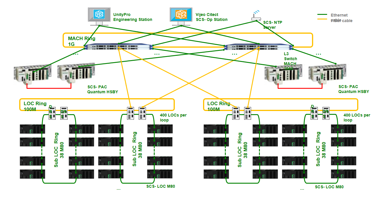 在鏡場每個LOC的控制網絡采用超五類線,在鏡場區域控制節點采用多模/單模光纖與上層Level2級網絡鏈接。在Level2與Level3層級及以上層級均采用光纖鏈接的方式。如此方式的系統構架比傳統的網絡構架可以節省大約1/4的網絡布線,及其相應的輔材附件以及大量的人工時。